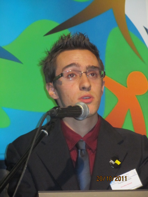 As the central idea of his speech, he referred to ‘people suppressing their feelings’. He pointed out that people do not feel free to speak. He alleged that people should say their minds in public, and continued talking about freedom of the press, saying that as long as people don’t speak freely, so wont the press. Further on in his speech, he said that teamwork is essential in order to make this conference a success. He explained, that with negotiating, acting amongst others and promoting solutions everyone can make the most out of this conference. He stated that the whole idea of MUN is ‘spreading ideas all over the world‘. He mentioned, too, that with crisis comes change, opportunity and development of character in people (referring to the world being in a global crisis). ‘Failure is part of the game’ he reported. As a final piece of advice, he said that everyone should become the player and not be controlled by anyone in any means.